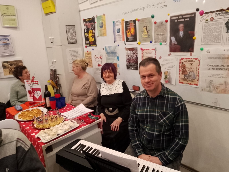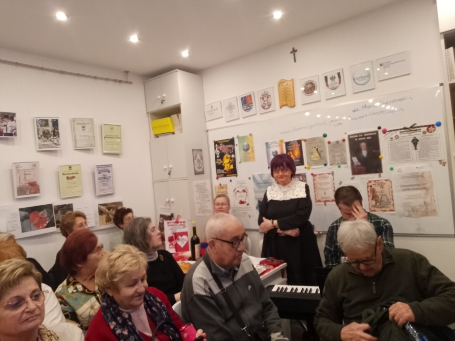 Anlässlich der Feier des Valentinstags veranstaltete der deutsche Verein „Maria Theresiopolis“ aus Subotica am Donnerstag, 13. Februar 2025, in seinen Räumlichkeiten in Subotica einen musikalischen Abend mit Vortrag zum Thema Volkstanz „Polka“. Der Vortragende zu diesem interessanten Thema war Dr. Sci. Stevan Firstner, und der musikalische Teil des Programms wurde von der Gesangsgruppe „Edelweiss“ aus Subotica durchgeführt, am Klavier begleitet von Kornelij Vizin, MA. Unter den anwesenden Gästen war auch Kornelia Weigner, Präsidentin des deutschen Vereins „Maria Theresiopolis“ aus Subotica.